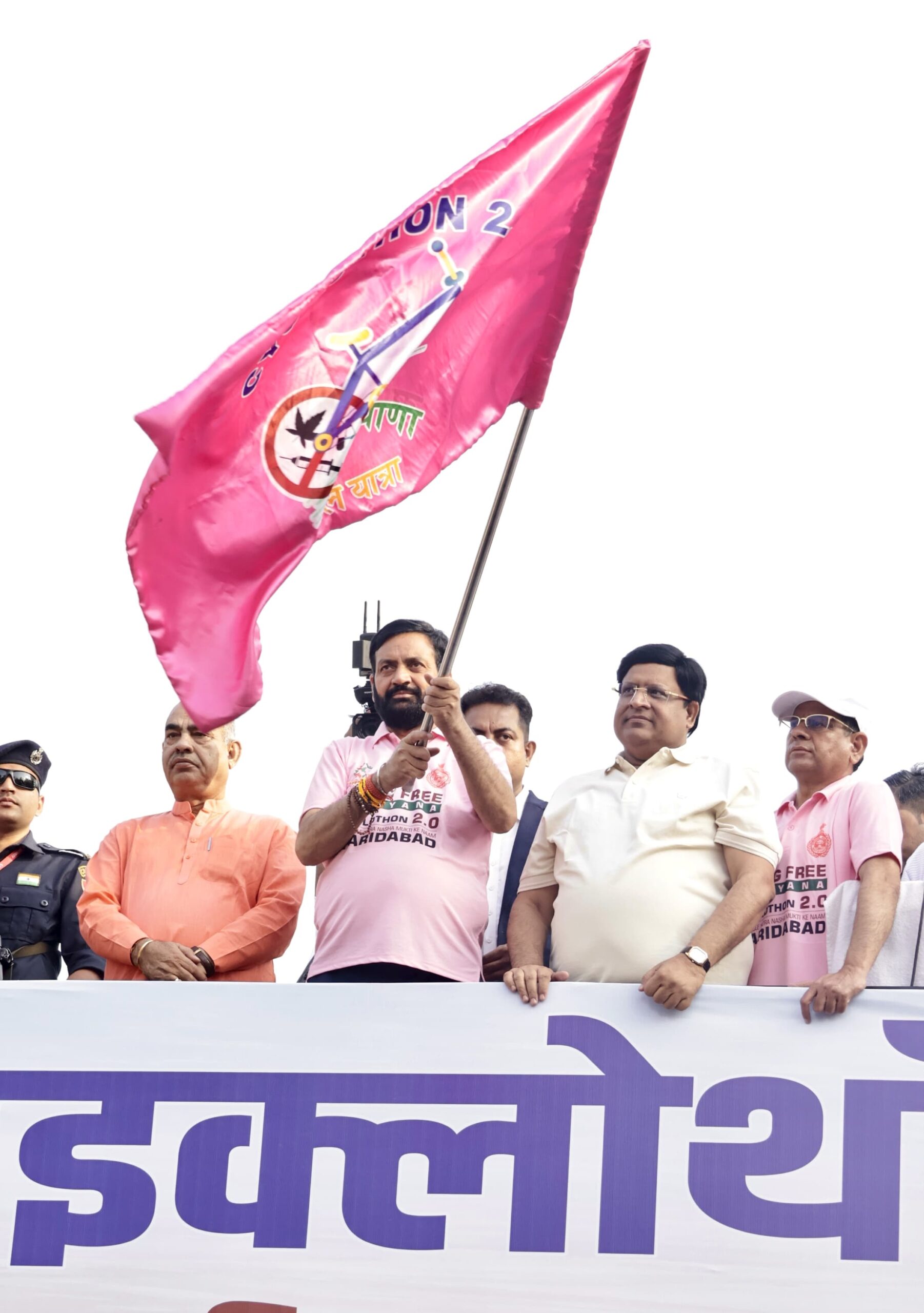 फरीदाबाद, 11 अप्रैल — हरियाणा में नशे के खिलाफ छेड़े गए अभियान को और मजबूत करते हुए शुक्रवार को मुख्यमंत्री नायब सिंह सैनी ने फरीदाबाद के सेक्टर-12 स्थित खेल परिसर से साइक्लोथॉन 2.0 को हरी झंडी दिखाकर गुरुग्राम के लिए रवाना किया। इस अवसर पर उन्होंने स्वयं भी साइकिल चलाकर यात्रा में भाग लिया और युवाओं के साथ कदम से कदम मिलाया।