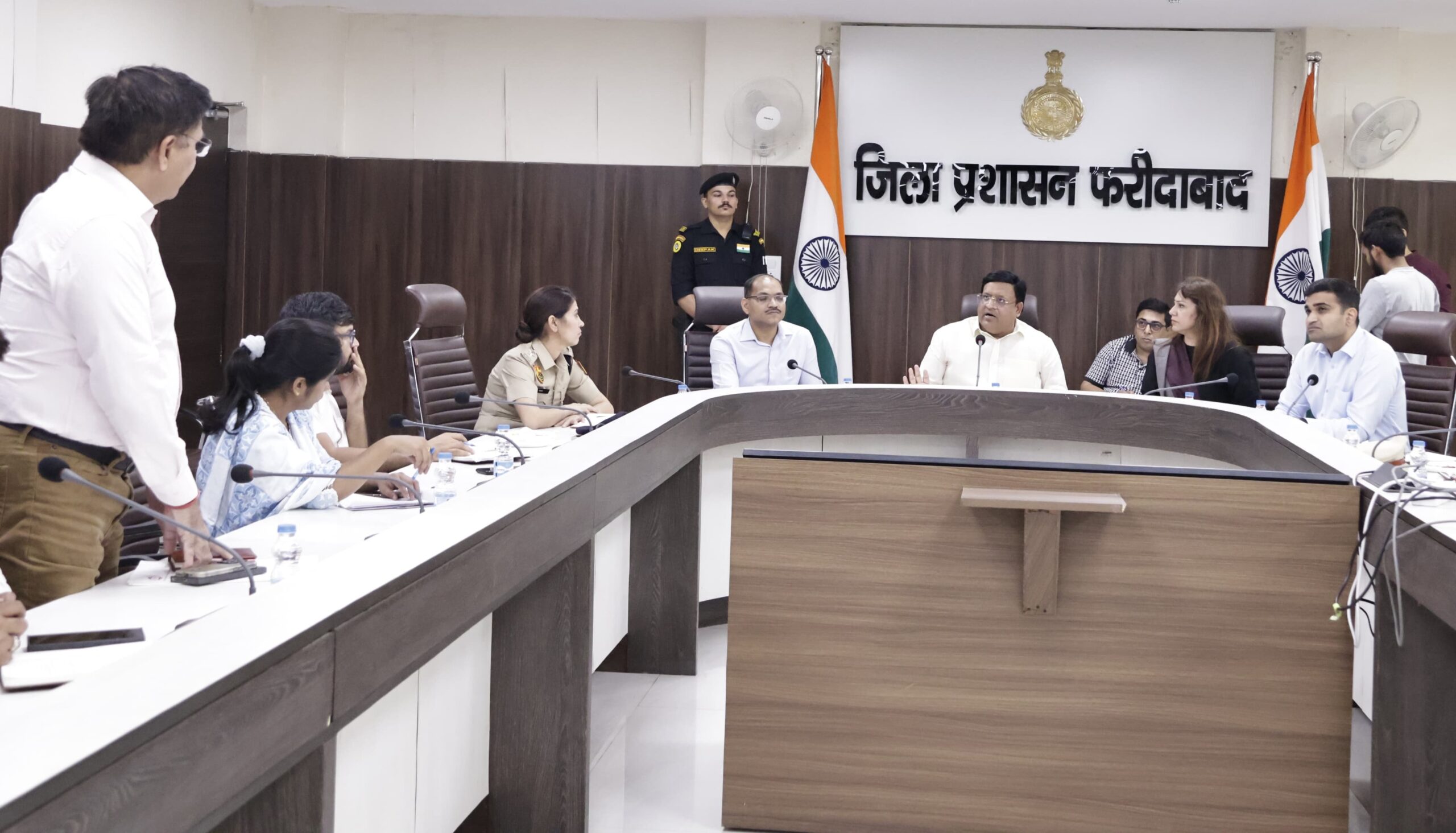 फरीदाबाद 2 मई ( धमीजा ) : आज शुक्रवार को तड़के हुई मूसलाधार बारिश से शहर भर में जगह जगह जल भराव और ट्रैफिक जाम की स्थिति को देखते हुए हरियाणा के स्थानीय शहरी निकाय मंत्री विपुल गोयल तथा खाद्य आपूर्ति राज्य मंत्री राजेश नागर ने जिला प्रशासन के आला अधिकारियों की बैठक ली तथा निर्देश दिए कि शहर में सीवरेज लाईनों ,नालों व नालियों आदि की समय पर सफाई कर गाद निकाली जाए , किसी भी सूरत में अव्यवस्था बर्दाश्त नहीं की जायेगी।