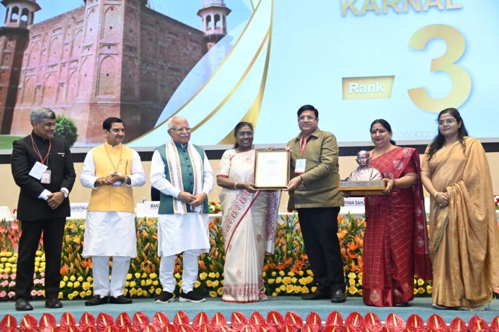 करनाल को स्वच्छ शहर कैटेगरी में तीसरा स्थान