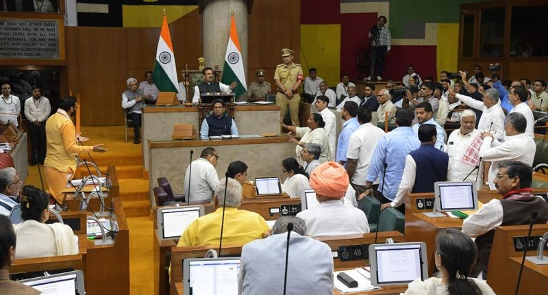 कांग्रेस विधायक बिना नेता के सत्र में हंगामा करते रहे