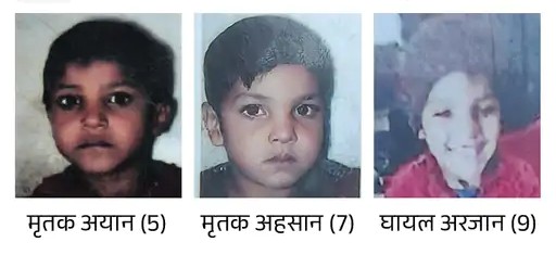 मामला पलवल जिले के हथीन खंड के गांव उटावड़ का है। मृतक बच्चों के पिता शाहबुद्दीन ने बताया कि उनका परिवार नूरिया मोहल्ले में रहता है। वह पेशे से ट्रक मैकेनिक हैं और गांव में ही दुकान खोल रखी है। उनके 3 बच्चे अयान (5), अहसान (7) और अरजान (9) उटावड़ के गरीबा पब्लिक स्कूल में पढ़ते थे। उन्होंने बताया कि अयान और अहसान पांचवीं कक्षा में पढ़ते थे। छुट्टी के बाद जब तीनों बच्चे स्कूल से घर जाने के लिए सड़क पर आए तो एक तेज रफ्तार कार ने तीनों को रौंद डाला। इसमें अयान और अहसान की मौत हो गई। जबकि, अरजान की हालत गंभीर है।