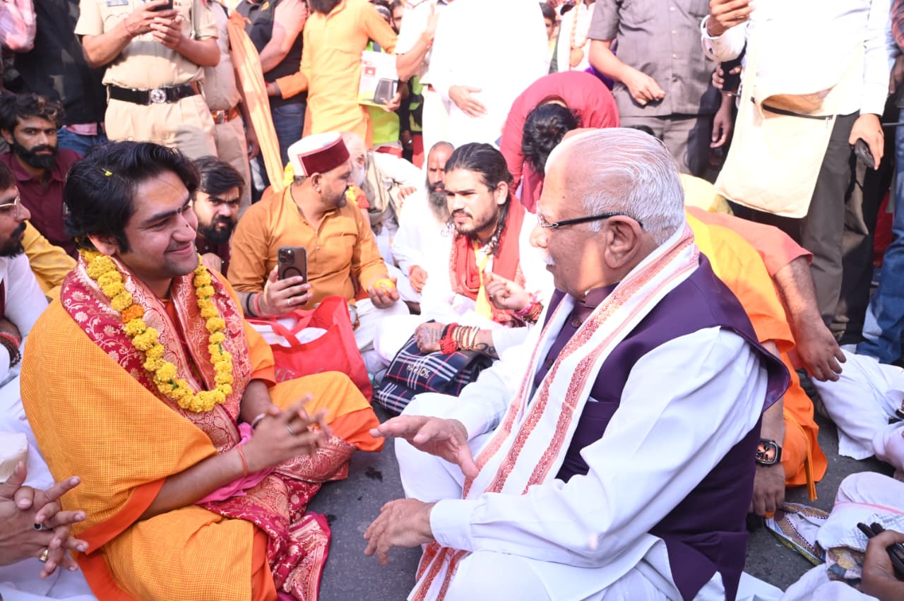 फरीदाबाद, 8 नवंबर ( नवीन धमीजा ) : बागेश्वर धाम प्रमुख धीरेंद्र कृष्ण शास्त्री की सनातन एकता पदयात्रा आज (8 नवंबर) भारी हजूम के साथ गुरुग्राम के रास्ते फरीदाबाद पहुंच गई। 7 नवंबर को दिल्ली से शुरू हुई यात्रा शनिवार को अरावली के मांगर कट से फरीदाबाद में प्रवेश किया। यहां केंद्रीय मंत्री मनोहर लाल खट्टर ने यात्रा का स्वागत किया।